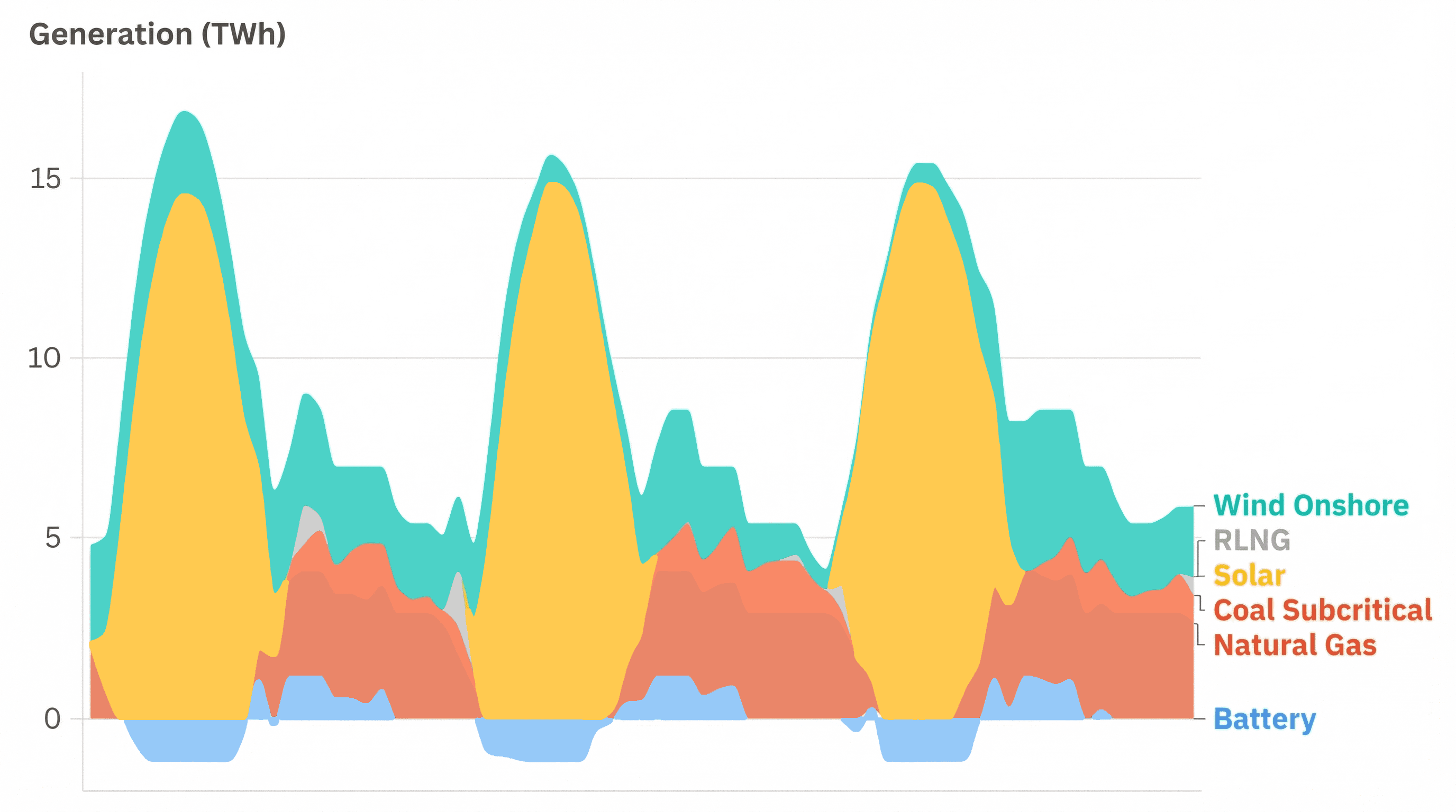 In 2026, when RLNG prices surge, the system turns to coal while excess solar in the day cannot be effectively utilised after sunset. The evening peak remains fully exposed to fossil fuel prices, and without batteries, daytime solar surplus cannot bridge the gap.